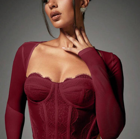Corset valery con mangas vino tinto